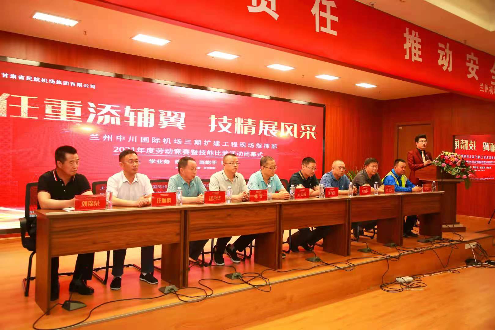 7月28日下午,蘭州中川國際機(jī)場三期擴(kuò)建工程現(xiàn)場指揮部舉辦了2021年度“勞動競賽暨技能比武”活動頒獎典禮。蘭州中川國際機(jī)場三期擴(kuò)建工程現(xiàn)場指揮部黨委副書記、常務(wù)副指揮長、黨委委員、總會計(jì)師,以及我司副總經(jīng)理等領(lǐng)導(dǎo)出席并參加了頒獎典禮。大會彰顯了本次技能大比武的進(jìn)取精神,通報(bào)了比武結(jié)果,與會領(lǐng)導(dǎo)為獲獎人員及獲獎單位頒發(fā)獎牌及獎品。
