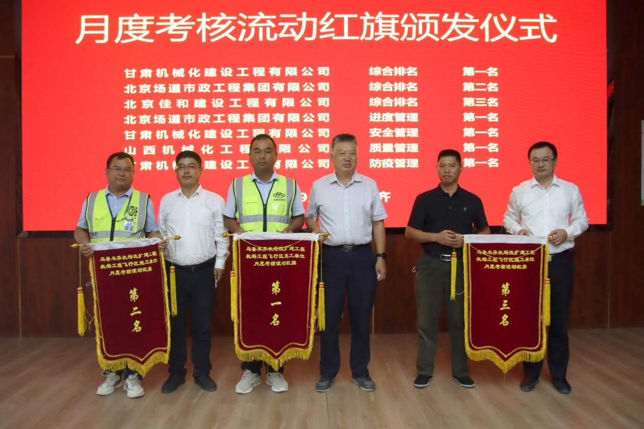 此次會議對施工單位八月份的相關工作進行了綜合考核,我司烏魯木齊機場項目經理部在8家施工單位評比中獲得綜合第一名、安全第一名、防疫第一名的好成績,得到了業(yè)主方、擴建指揮部及監(jiān)理單位的一致認可。同時會議對九月份全場飛行區(qū)工程的相關工作進行了部署,下達了各標段施工任務。