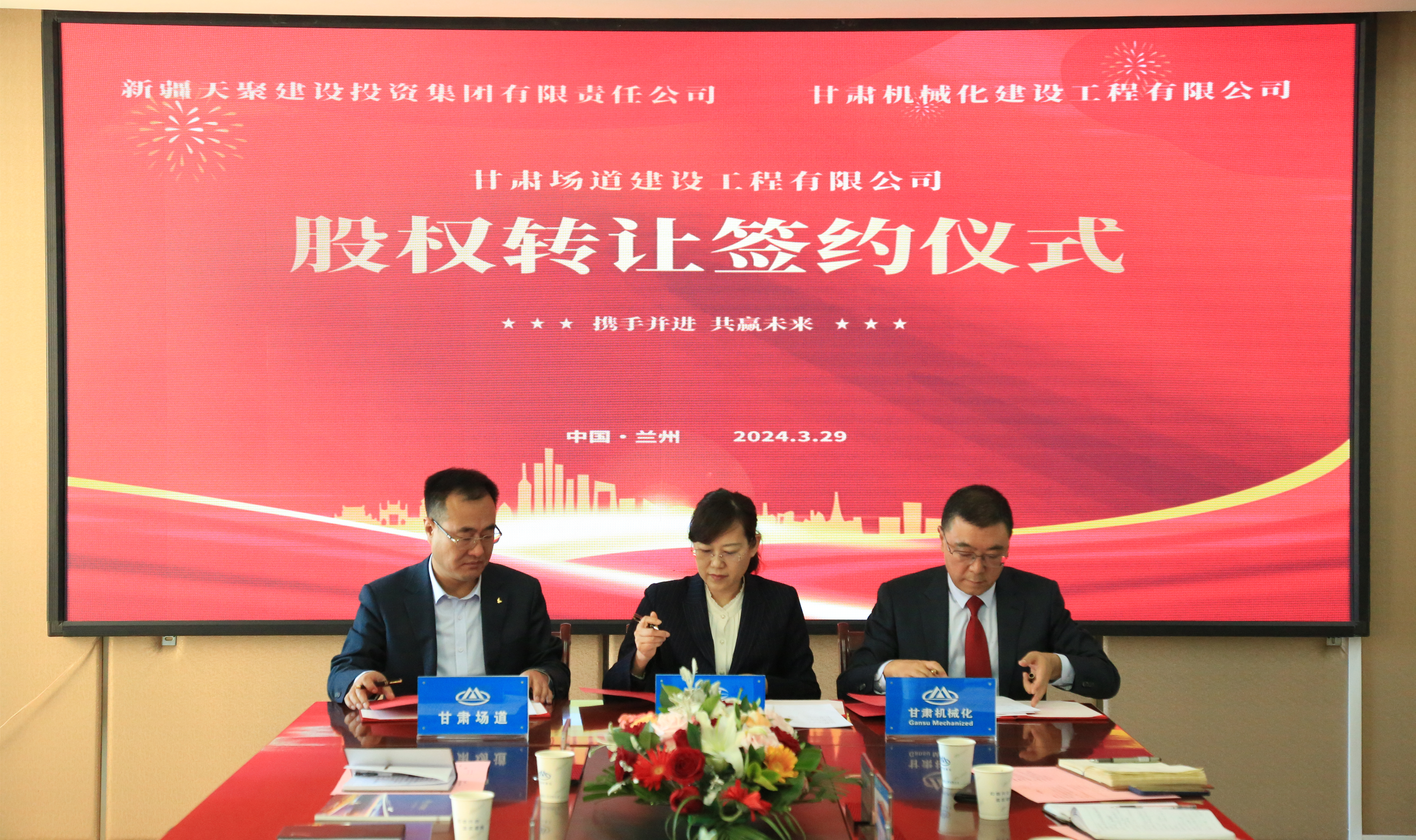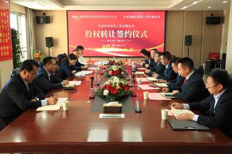 2024年3月29日,天聚建投集團與我司在金城蘭州舉行了甘肅場道公司股權(quán)轉(zhuǎn)讓協(xié)議簽約儀式。